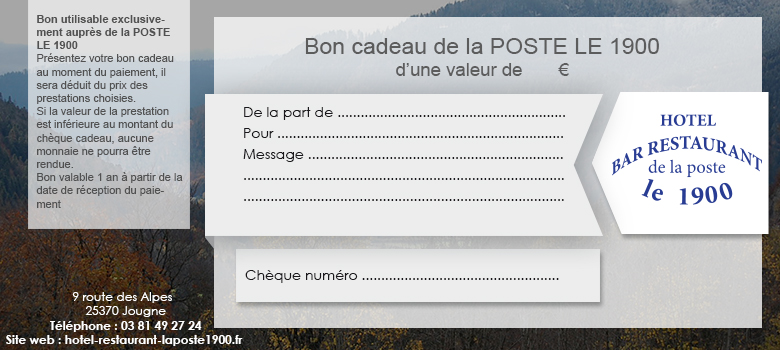 L’Hôtel – Bar – Restaurant de la Poste Le 1900, votre établissement à Jougne (25 Doubs, Franche-Comté), non loin de Métabief,