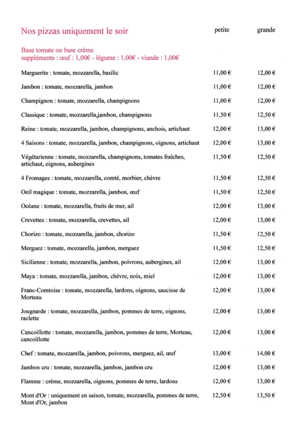 L’Hôtel – Bar – Restaurant de la Poste Le 1900, votre restaurant à Jougne (25 Doubs, Franche-Comté), tout près de Métabief, vous propose du vendredi au mardi, le soir uniquement un service de pizzas à emporter.